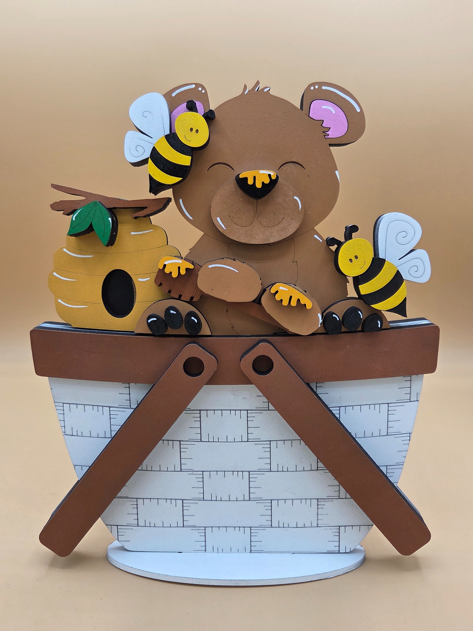Bring the beauty of nature to your decor with our interchangeable bear with honey basket insert! Made from 1/4" MDF for durability and charm. Pair them with basket bases, sold separately, to create a unique and personalized display.