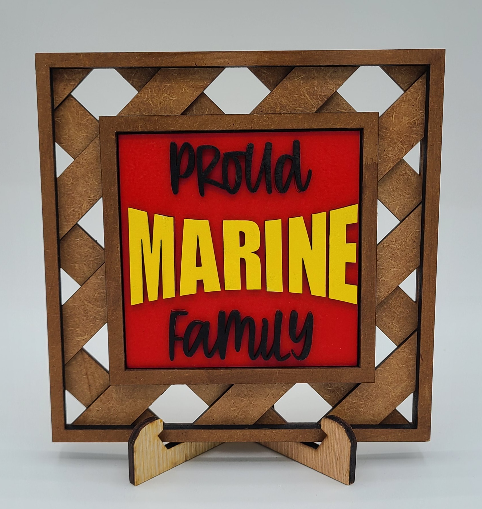 Honor the brave men and women of our armed forces with our military theme interchangeable decorative tiles. Each tile measures 4.25" x 4.25" and is crafted from 1/8" MDF, ensuring both durability and style.
