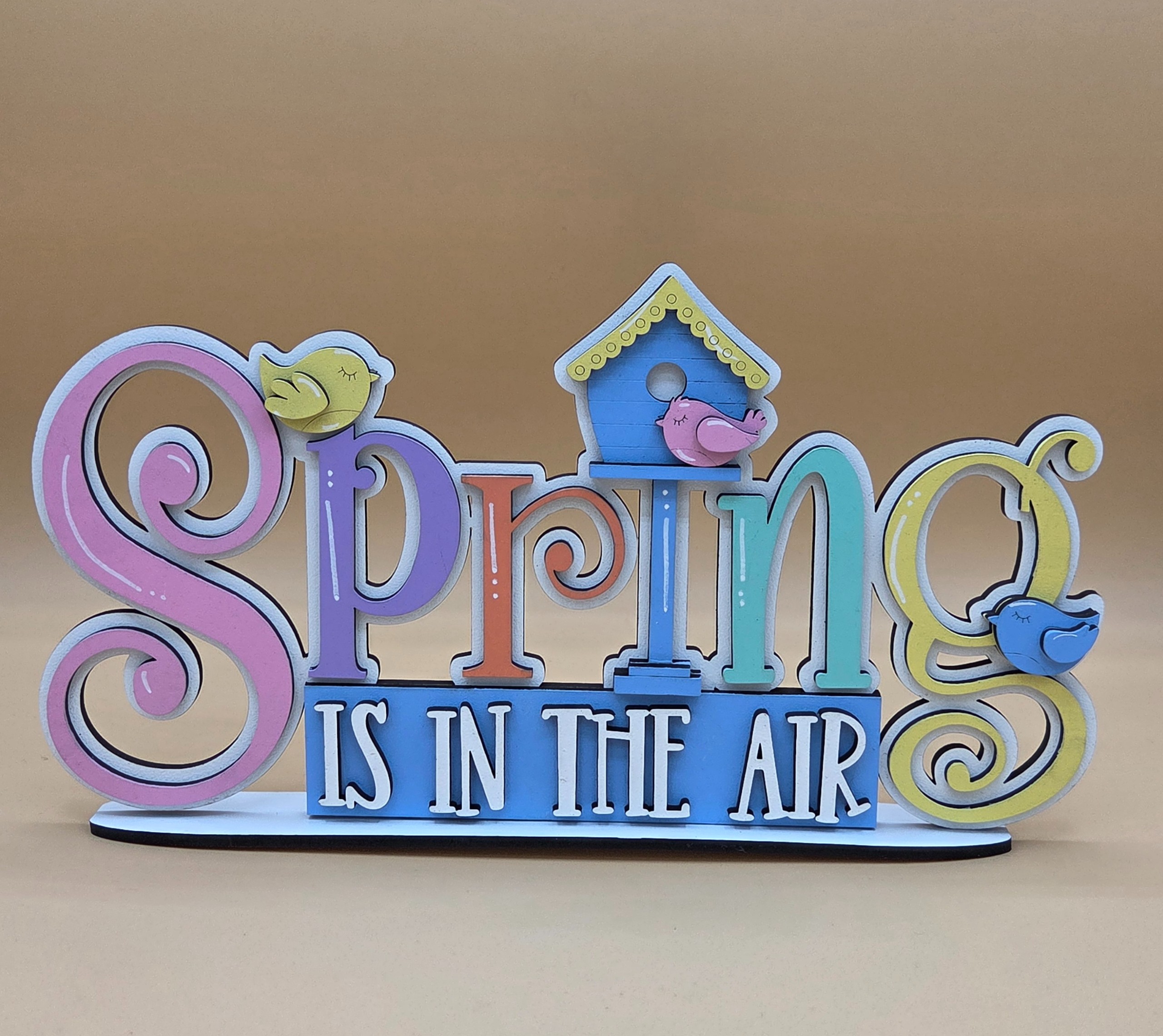 Bring the warmth and renewal of the season into your home with this beautifully crafted spring shelf sitter. Made from durable 1/8″ MDF and precision‑cut for crisp detail, this piece adds a bright, uplifting touch to mantels, tiered trays, bookshelves, and spring displays. Measuring 11″ wide by 6″ high, it’s the perfect size for refreshing your décor or gifting for the season.