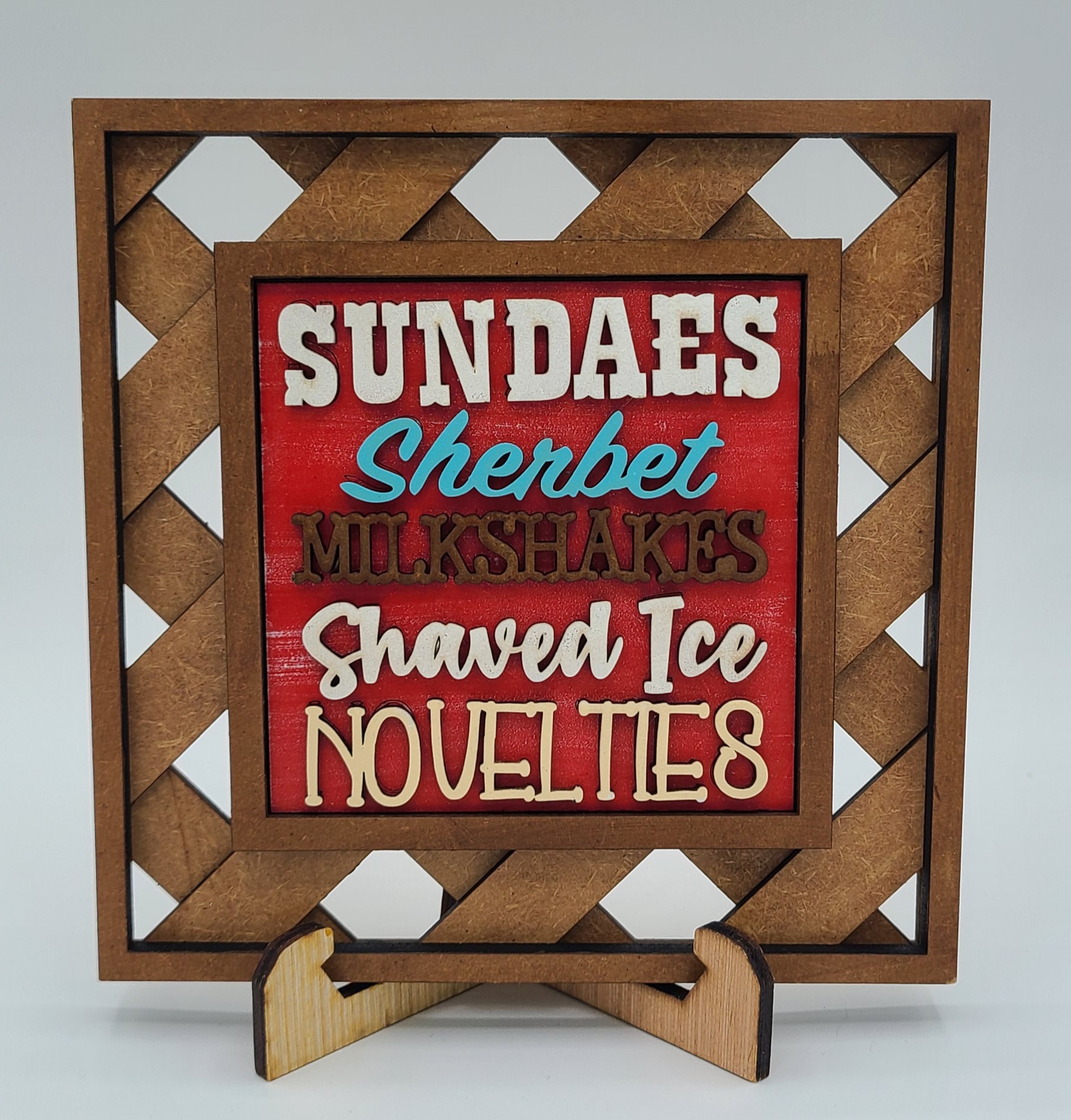 Sweeten up your decor with our delightful ice cream theme interchangeable decorative tiles. Each tile measures 4.25" x 4.25" and is crafted from 1/8" MDF, ensuring both durability and style.