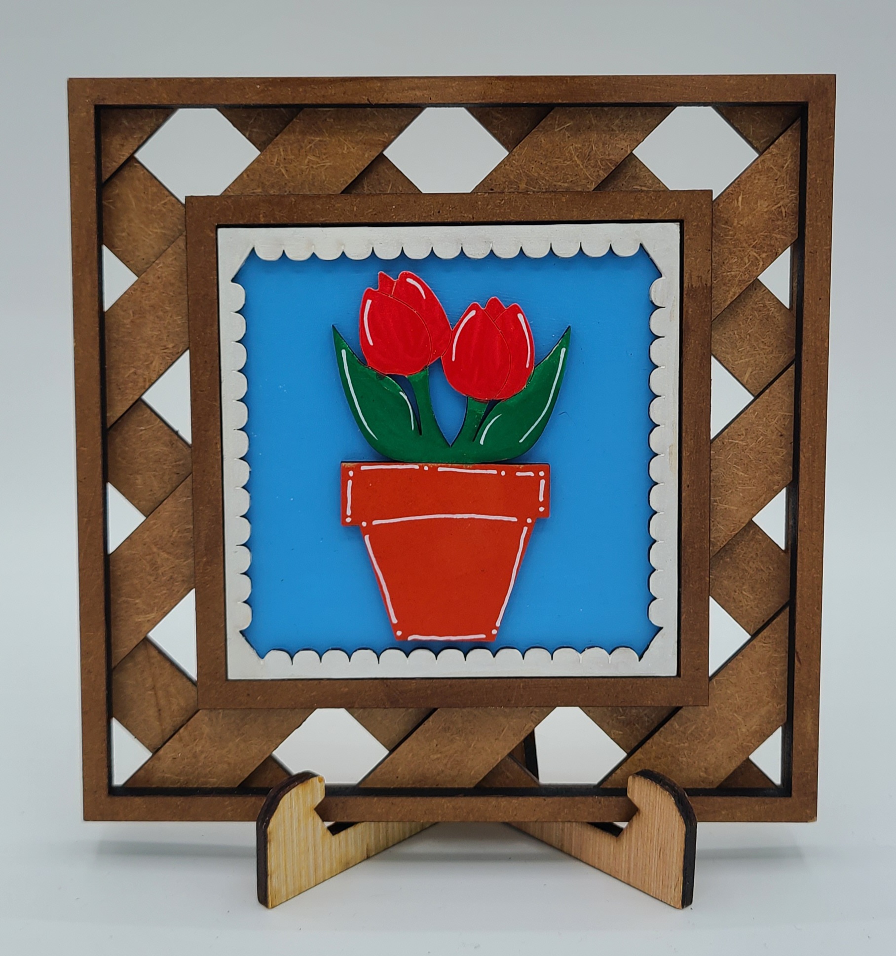 Brighten up your decor with our charming flower theme interchangeable decorative tiles. Each tile measures 4.25" x 4.25" and is crafted from 1/8" MDF, ensuring both durability and style.
